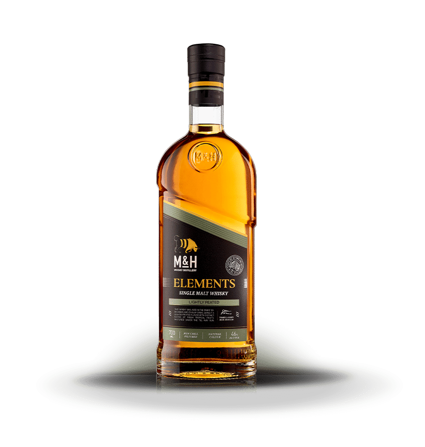 The M&H Elements series is a composition of flavors and aromas assembled from meticulously selected casks that bring forward characters enhanced by the casks' wood, origin, and history. Each expression in this series begins with the M&H Classic Single Malt Whisky and is complemented with whisky matured in various hand-picked, superlative, and quality oak casks, culminating in a beautiful natural color, impressive flavors, and a well-balanced single malt. The M&H Elements manifest the combination of traditional distillation methods with rapid but graceful hot climate maturation.